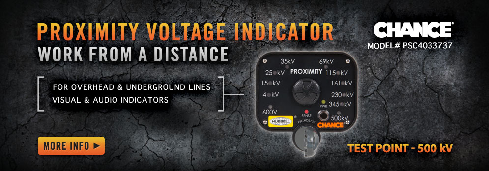 The CHANCE® Multi-Range Voltage Indicator® (MRVI), model number PSC4033710, is a portable tool to confirm that an AC (Alternating Current) high voltage circuit is energized or de-energized prior to performing maintenance. It provides field practicality over the two points of contact measurement method. Readings from the MRVI represent the class of voltage that is present on the line.